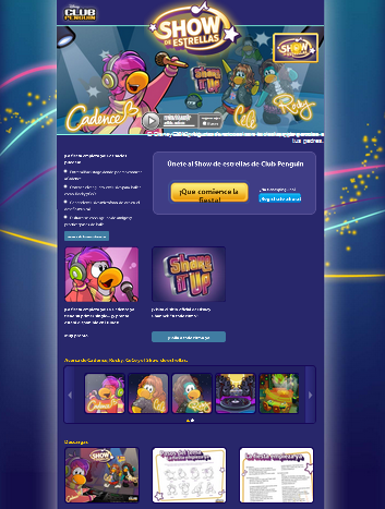 Hola amigos de club penguin, club penguin nos ha traído una nueva página oficial del show de música, en el cual podemos aprender más sobre los pasos de baile de Cadence, Escuchar su música, leer y aprender un poco más de las nuevas participantes, descargar Fondos de pantalla y mucho más.